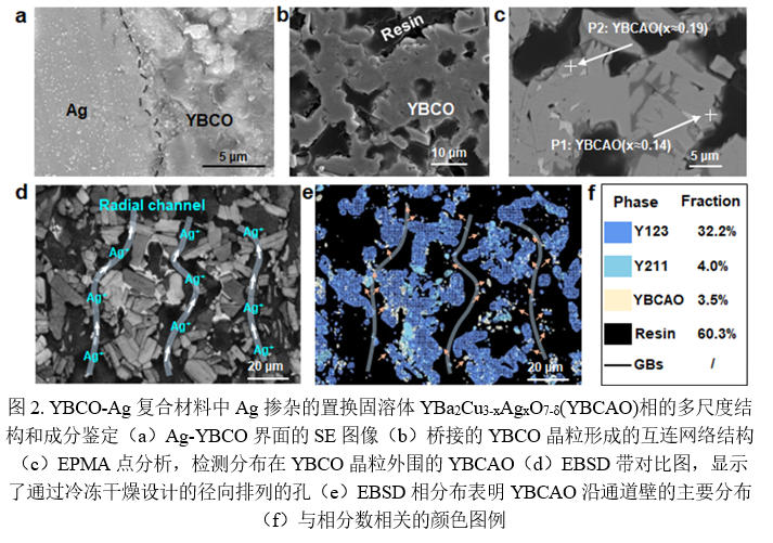 美国贝尔实验室最早认为银(Ag)是一种与YBCO体系高度相容金属并提出了通过掺杂Ag元素来改善YBCO超导块材的超导性能和断裂韧性的观点。随后大量的研究表明,Ag元素的引入不仅不会显著降低YBCO的临界温度,反而可通过增强磁通钉扎和改善晶粒连接性显著提升临界电流密度,同时在断裂韧性和弯曲强度等方面均有明显改善。然而,Ag元素在YBCO体系中究竟是以晶界偏析的形式存在,还是能够进入晶格形成固溶体,其空间分布特征及其对晶体取向和织构演化的影响机制,长期以来仍存有争议、相关微观机理尚不清晰。