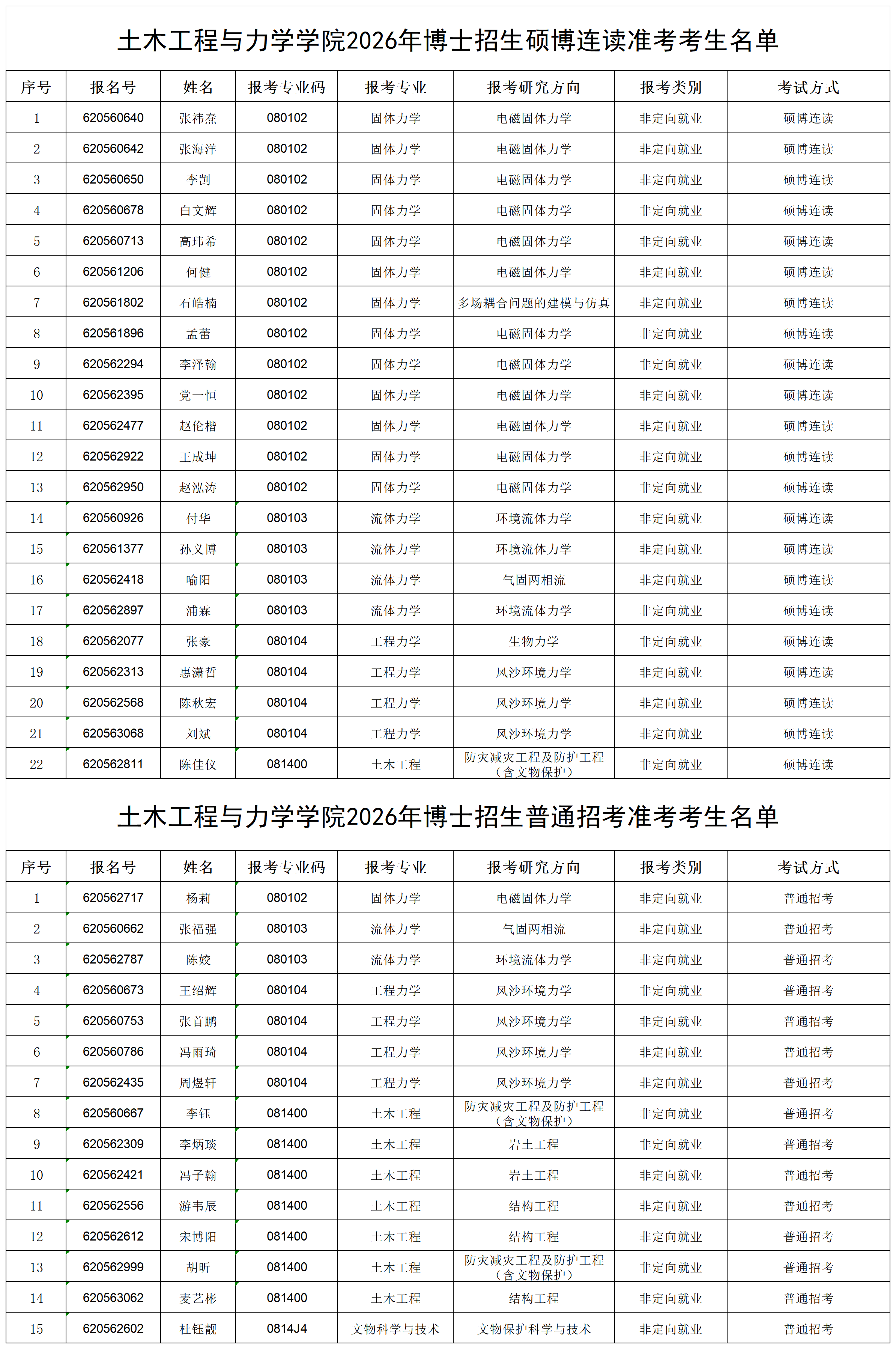 土木工程与力学学院2026年博士招生准考考生名单公示