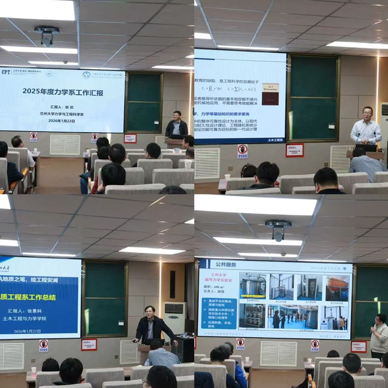 岁序更替,华章日新;学术薪火,代代相传。为搭建青年学者思想碰撞的桥梁,复盘年度发展成效,擘画未来奋进蓝图,2026年1月22日,土木工程与力学学院与西部灾害与环境力学教育部重点实验室在祁连堂322学术报告厅举办青年学者沙龙暨2025年总结大会,学院及重点实验室全体教师、博士后参加了会议。
