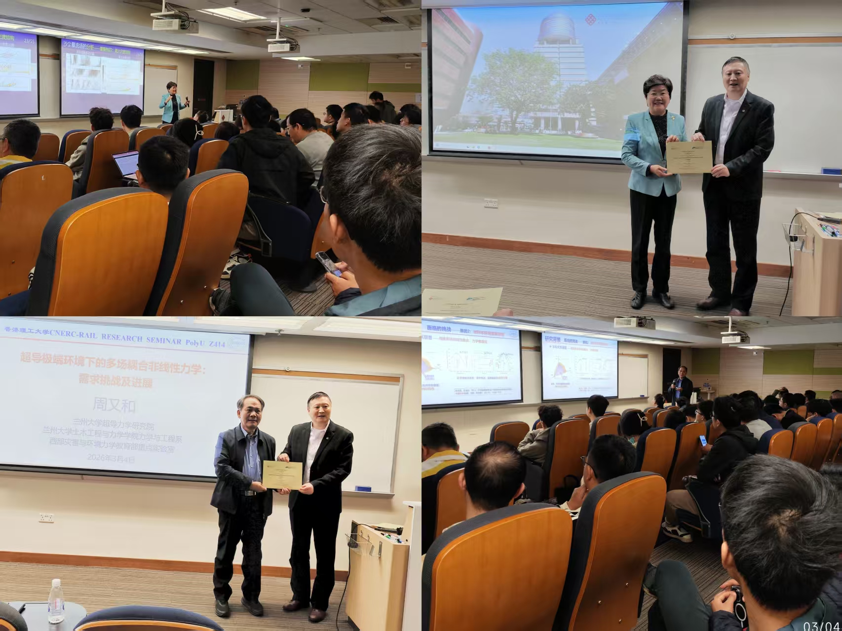 应香港理工大学土木及环境工程学系(CEE)讲座讲授、国家轨道交通电气化与自动化工程技术研究中心(香港分中心)(CNERC-Rail)主任、香港理工大学杭州技术创新研究院院长倪一清教授的邀请,兰州大学超导力学研究院院长周又和院士与郑晓静院士、王花平副教授于2026年3月1日-6日赴香港开展学术交流。